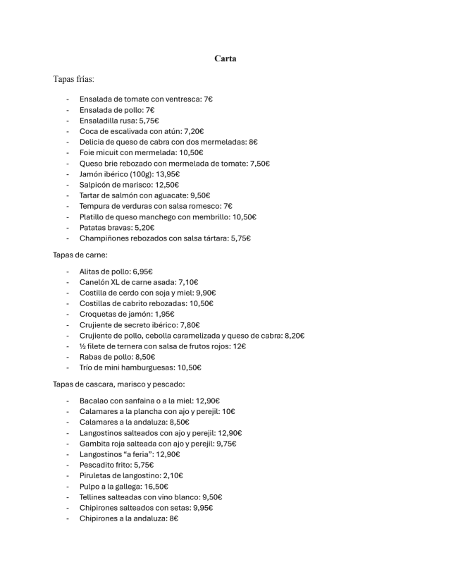 CatalanMediterraneanSpanishEuropeanBurgerCodCroquettesSaladTartar steakTartareBookable terraceContemporary cuisineFrom marketOutdoor diningWinter terraceLocally producedOrganic foodAmerican ExpressDog-FriendlyWheelchair AccessibleWifi