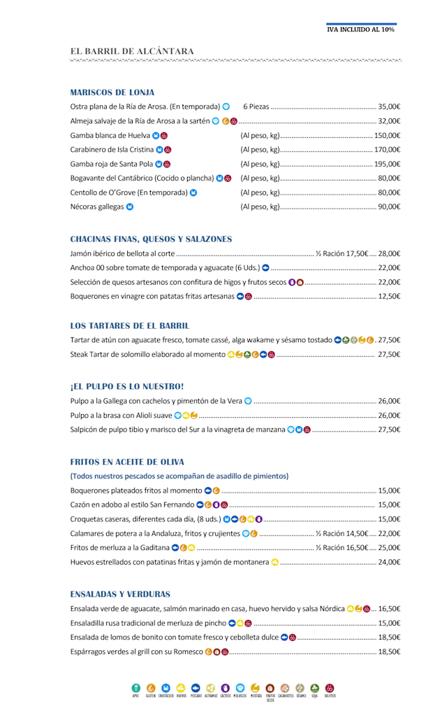 10/10A WONDERFUL seafood experience, away from the tourist crush of Puerto del Sol. Our prawns were fabulous, the clams marniere outstanding, my wife's sole was done to perfection as was my octopus. My only negative comment would be that the octopus was over seasoned with paprika, but that was easily rectified with the sauce from below. I think that all of these El Barril restaurants are owned by the same company - or at least they have the same website design and very similar menus, particularly when it comes to the prawns. Note - the prawns are sold by the kilogram, which is a little odd for Americans. I ordered two of the prawns, and the waiter took that to mean 200 grams. For reference, there are about 5 white prawns per 100 grams, 2-3 red per 100 grams, and 1-2 of the large red per 100 grams. There were only locals here - no other Americans that we saw - so I guess this was the authentic Madrid seafood experience. Very highly recommended.