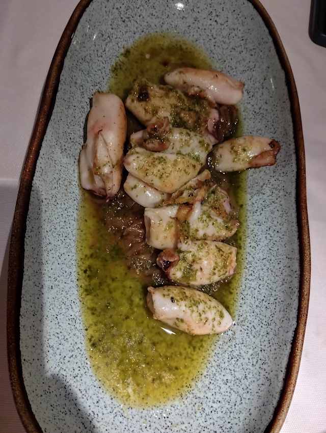 - Chipirones de costa a la parrilla con sal de ajo