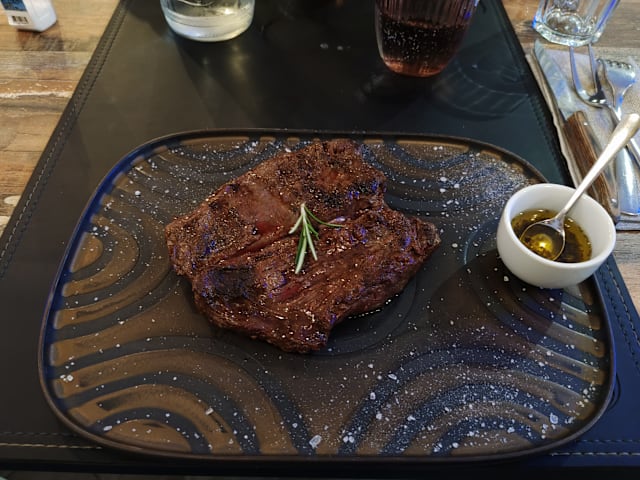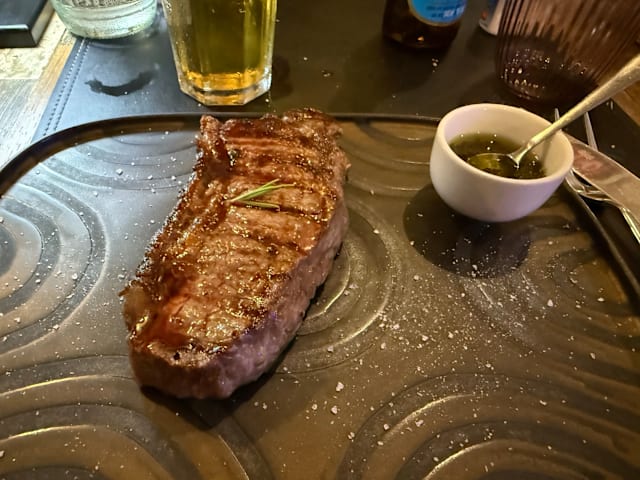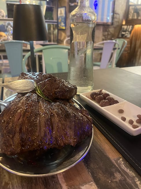 7/10Great appetisers - chorizo and empanada. Steaks were ok, one was good but mine was a little tough and quite fatty/too much gristle.