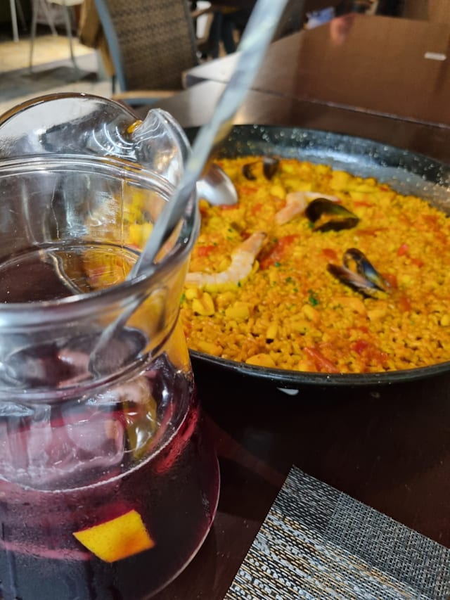 10/10The food was absolutely fantastic had garlic bread with tomato, black pudding, cracked eggs with chorizo, and paella for 2 and a lovely bottle of tinto wine finished with Dos barqurreto , proper Spanish restaurant 👏