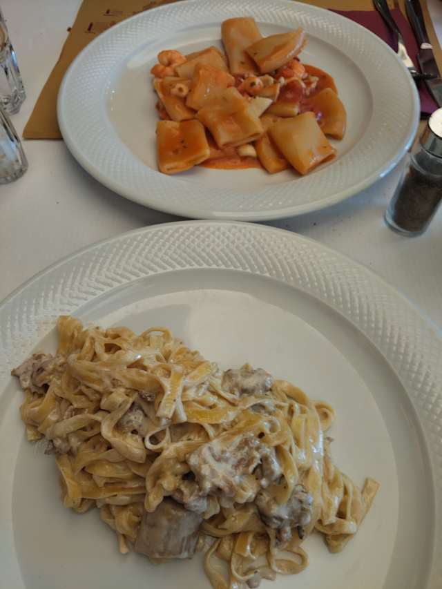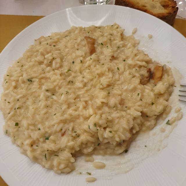 8.5/10Italian local restaurant. Good local dishes. I opted for spaghetti afliep, olio & peperoncino as an ample starter, which came with bread - quite good. Followed by a tsgliata ai porcini that was great, especially accompagnied with a Valpolicella. Recommended.