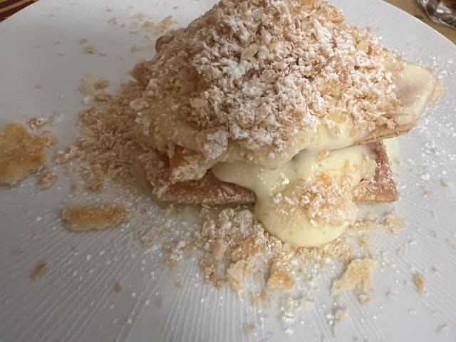 Italian local restaurant. Good local dishes. I opted for spaghetti afliep, olio & peperoncino as an ample starter, which came with bread - quite good. Followed by a tsgliata ai porcini that was great, especially accompagnied with a Valpolicella. Recommended.
