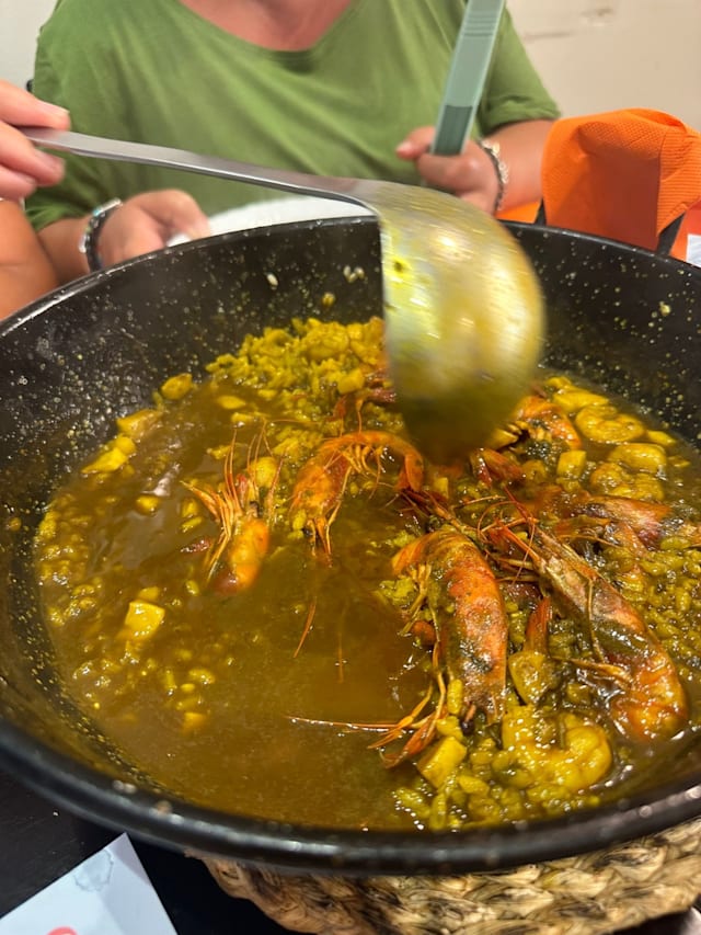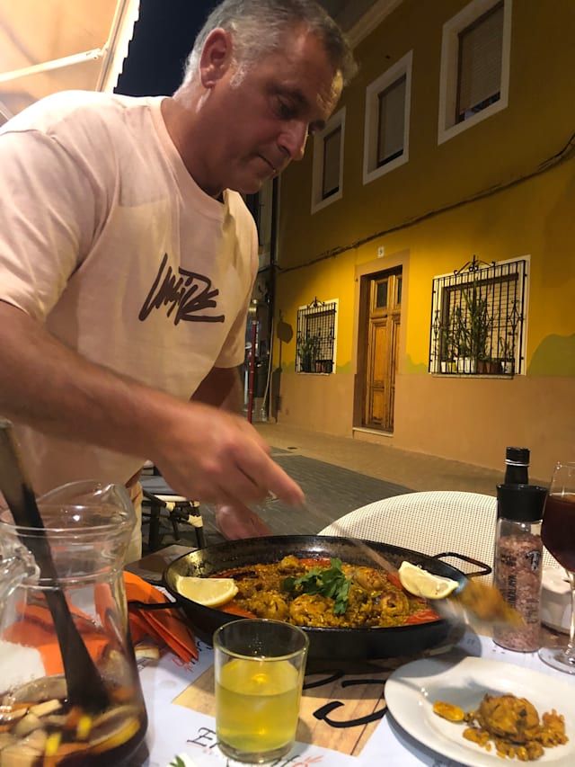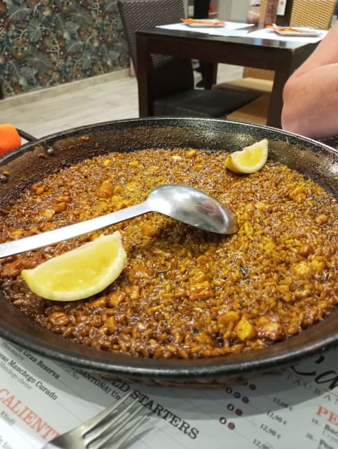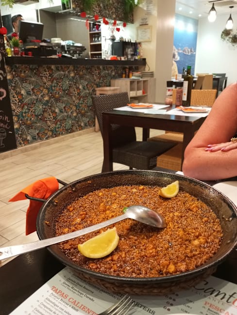 10/10Lovely very fresh seafood paella rice for 2 people. air conditioning inside fabulous. would recommend.