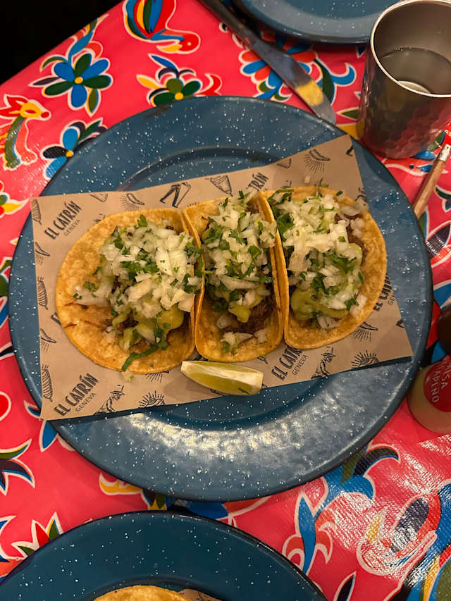 8/10This place has the best tacos in Geneva, and that's the only reason I keep coming back. But there are two things that always bug me: First, the limes. We ordered eight tacos for two people and got just a quarter of a lime. I asked for more and got two more quarters. As a Mexican, I’m used to using a lot more lime on my tacos. Luckily, I had one in my bag from grocery shopping and used it. I felt a little awkward, but it saved the meal. Honestly, they should add “extra lime” as a menu item. I’d happily pay for a proper portion. Second, when they bring your order, all the tacos are mixed together.. You have to figure out which ones are yours and take them from the other person’s side. I’ve never seen this in Mexico or at any other Mexican restaurant. The staff at El Catrín seemed to think it was totally normal. Service is okay, prices are typical for Geneva, and the food is great. Just be ready to sort your tacos and bring your own citrus.