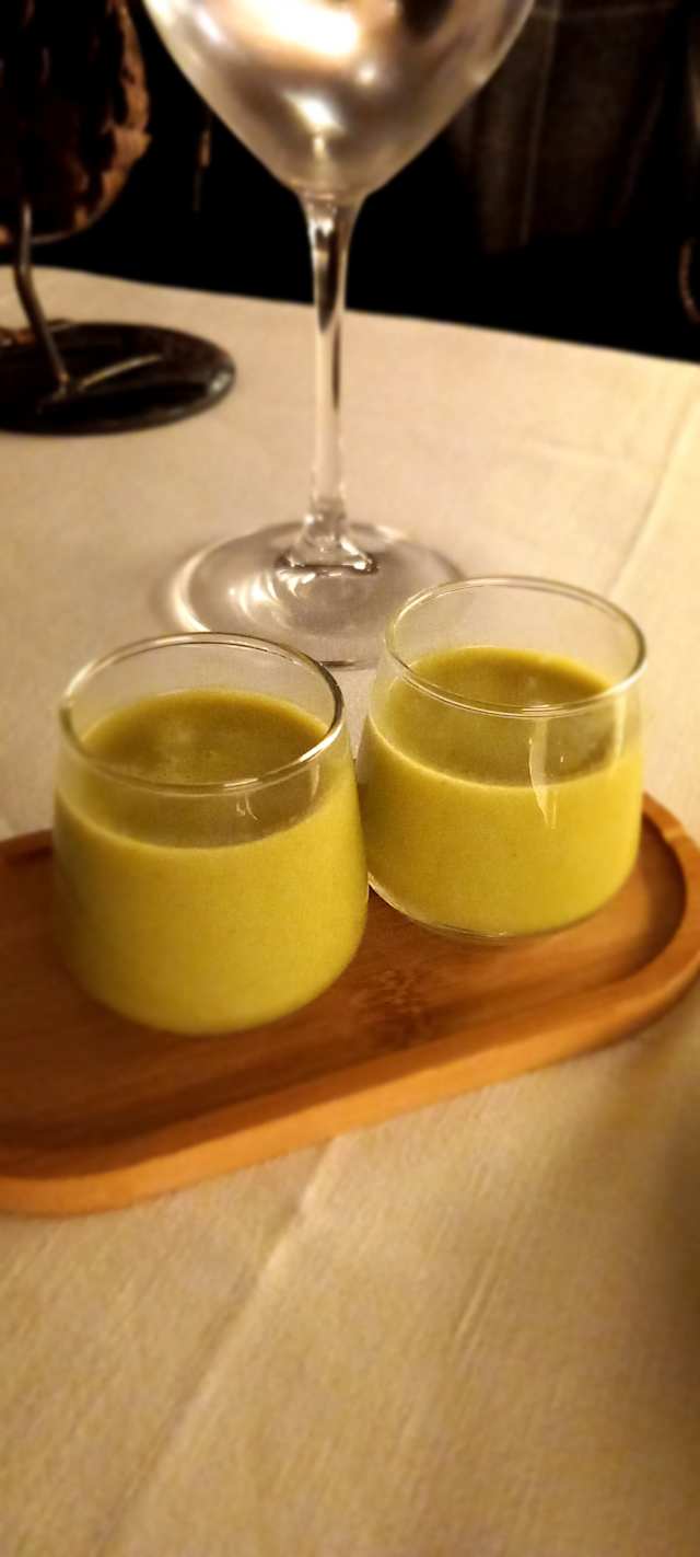 - Caramelized cured anchovies, apple granita & ajoblanco foam