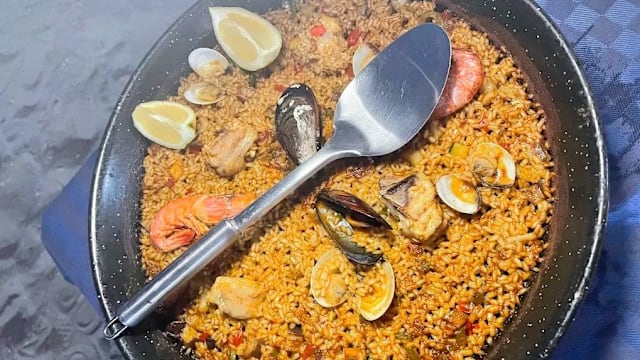 Pasta, gambas, langostinos, calamares, mejillones y almejas