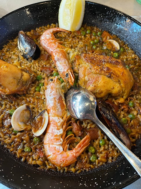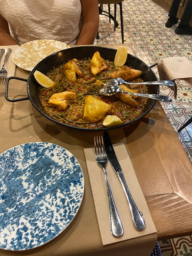 8/10Food was good, seefood paella and fried artichokes, service except house red wine. House wine I did not like much.