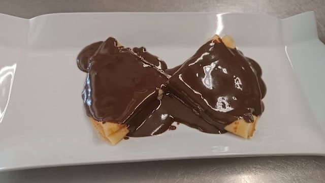 Crep relleno de helado de turrón y cubierto de chocolate fundido, 1 un.