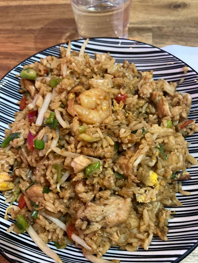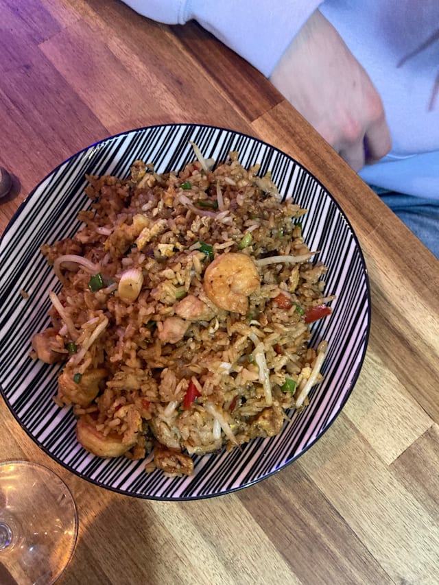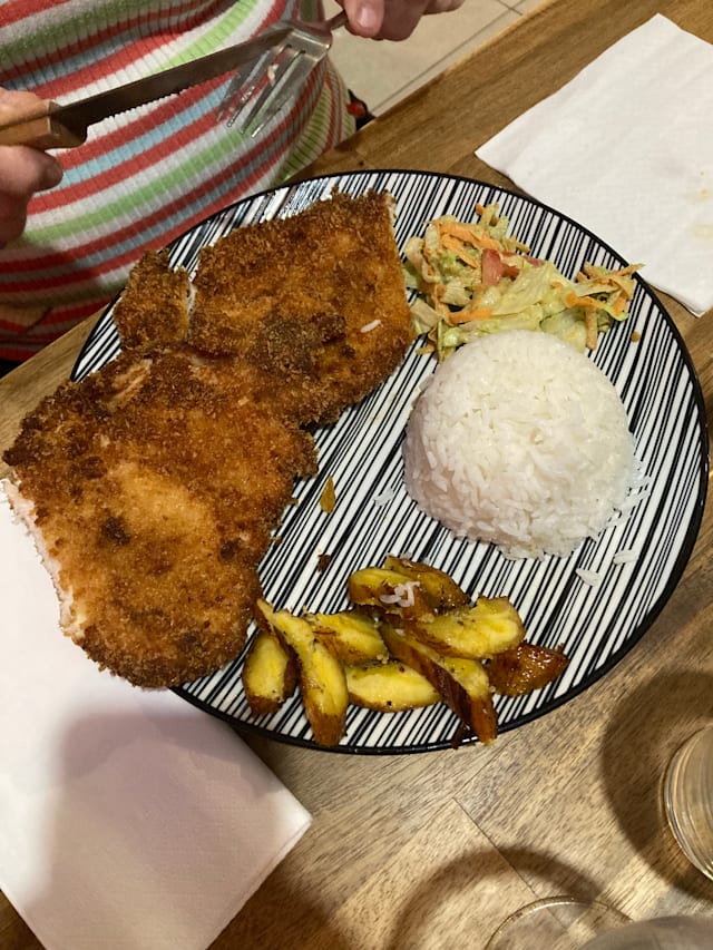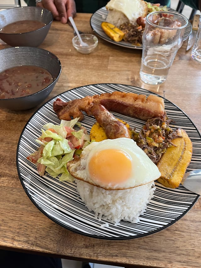 9.5/10Really kind staff, always smiling. We eat a very good arepa and we split a main dish (the one with rice, meat, shrimps, egg and pepper): for us was enough. Good quality and good price!