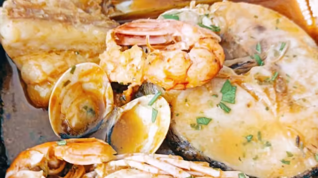 - Caldereta de bogavante, cigala, gamba, sepia, almejas, navajas; todo ello con una salsa marinera tradicional. Mínimo 2 personas