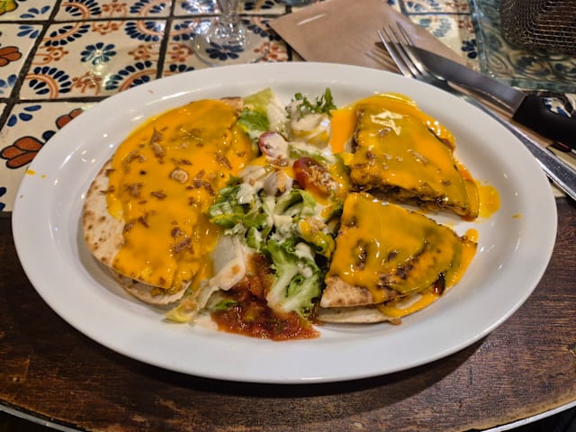 6.5/10Good food, amd good terrace for summer, but not normal that vegetarian options do not have a source of protein as a replacement of meat, and still cost the same price. Meat was only replaced with vegetables, as confirmed by the waiter. Also, the waiter indicated that the meals we took were not spicy, but they definitely were. Waiters could also be more welcoming.