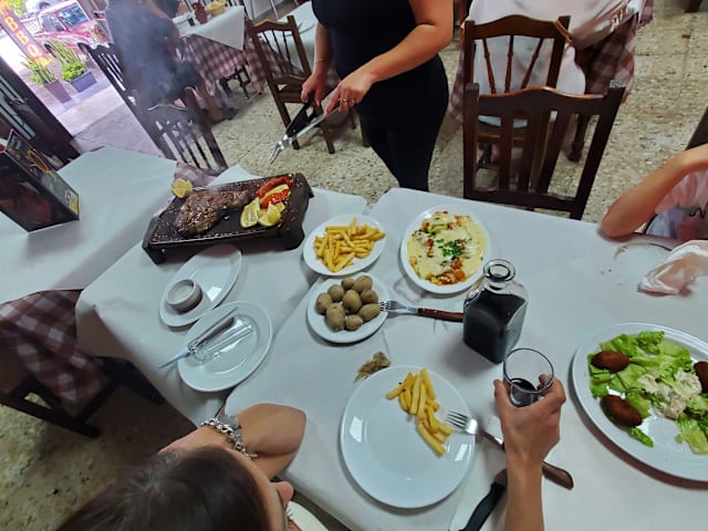 9/10After being seated in a table we were given bread with 2 delicious sauces (free of charge). Time from order to service was about 12 minutes, sizzling variety of meats, some needed to be given time to be ready to eat. Overall experience was very good.