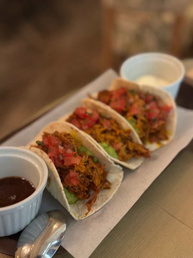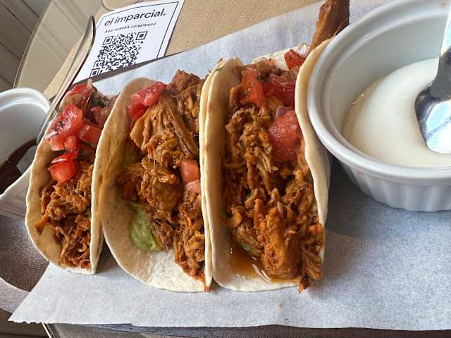 - Tacos de cochinita pibil con guacamole y pico de gallo