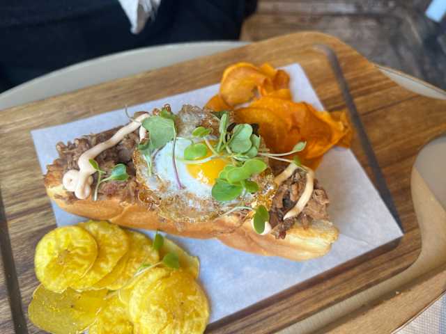 - Brioche de costilla a baja temperatura con chilly garlic y huevo de codorniz