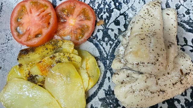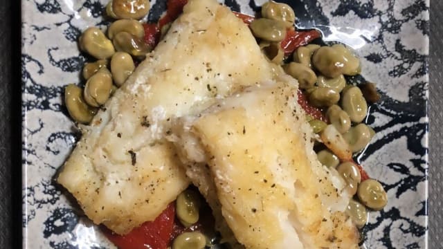 Bacalao Confitado Al Romero Sobre Pimiento Del Piquillo Y Habitas Baby