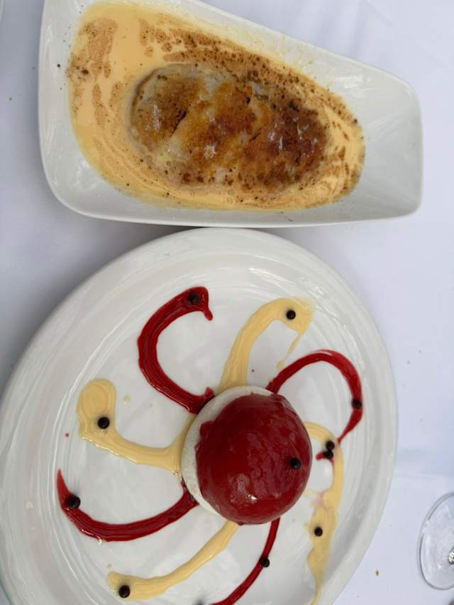 - Burrata con croissant a la plancha, rúcula y parmesano