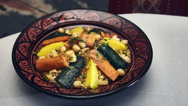 8.5/10Very nice place, set up like a real Arab lounge. We came to enjoy a couscous and were happy with the food. I’d have loved to see a couscous royal in the menu vs only a chicken one. Tried the tajin and was very good. The mint tea and the Arab patisserie was excellent.