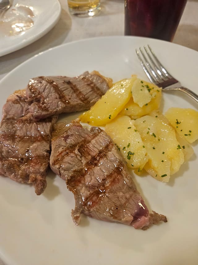 8/10Atmosphere is quite old school. Nice. I hade mushrooms as a starter (nice but small), and unlimited churrasco as a main. Churarasco was quite greasy, but I guess churrasco always is, to a certain extend. Coffee came with ´chupitos´, which is always a nice touch. Overall a nice place with good food.