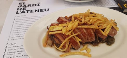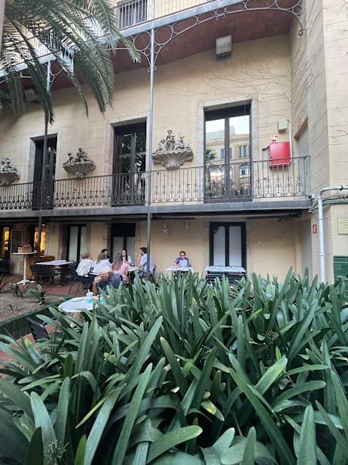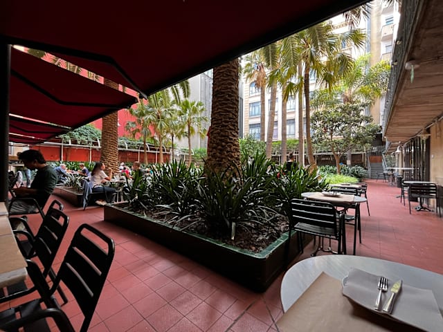 8.5/10an oasis of calm in a sea of madness. We had the fillet steak and breast of duck, both excellent. Seated in a beautiful inner courtyard garden belonging to a beautiful building. only a stone's throw from Las Ramblas but you could be in a different world.