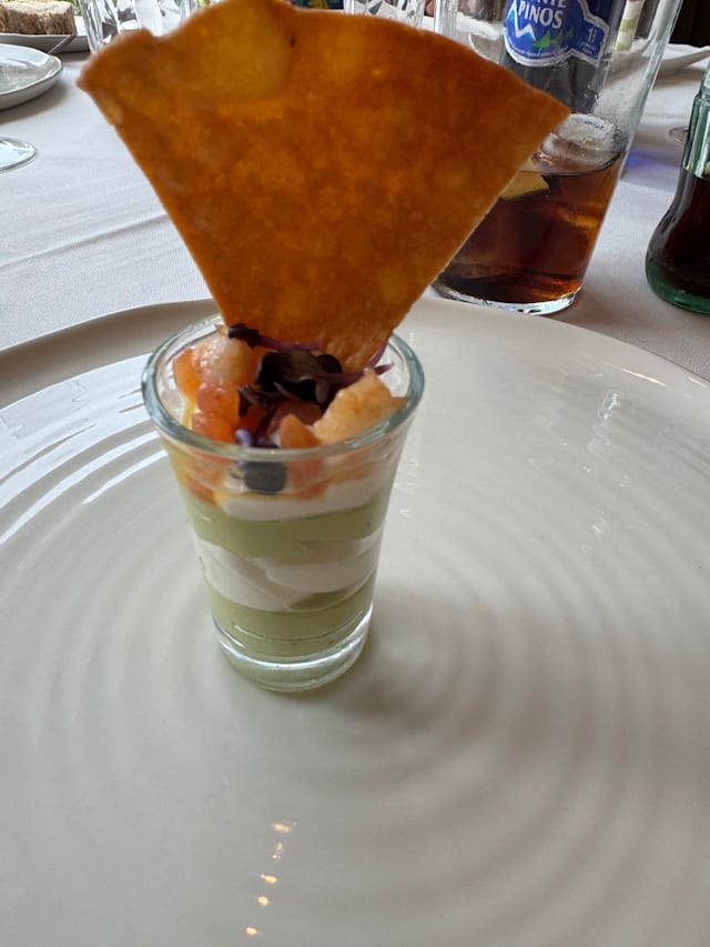 Con aguacate, salsa de erizos de mar y brotes tiernos