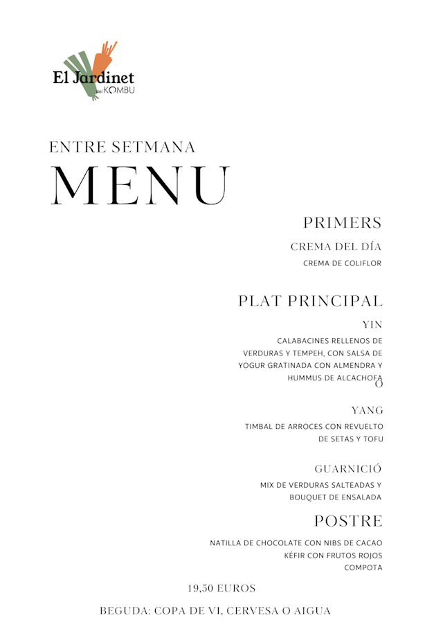 El Jardinet del Kombu es un restaurante vegano y macrobiótico que ofrece menús elaborados pensando en la salud, el equilibrio y el respeto por la naturaleza. La comida macrobiótica se basa en la armonía entre alimentos yin y yang, utilizando ingredientes orgánicos, vegetales frescos, granos integral...