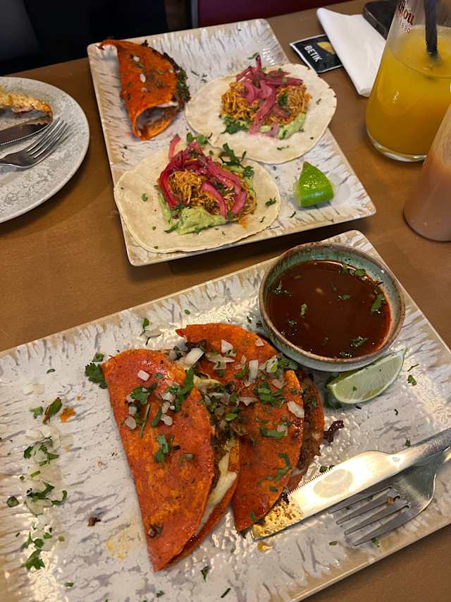 - 3 unidades de tortillas caseras de maiz nixtamalizado, cerdo duroс marinado con achiote y cítricos, cebolla encurtida y cilantro.