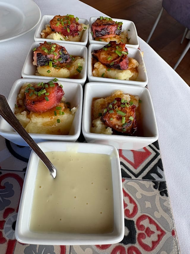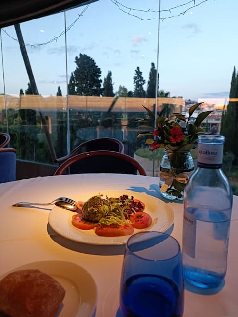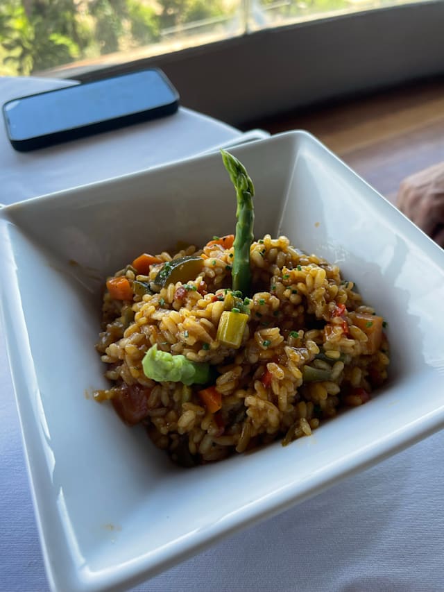 7/10Very nice view from the top. Nice and friendly camareros. The caldoso was super good. We ordered a bottle of local wine that came fresh and served properly. Now for the rest, this was my second time and likely the last time here. The food is overpriced for the quality, they charge 10% IVA which is not on the menu.