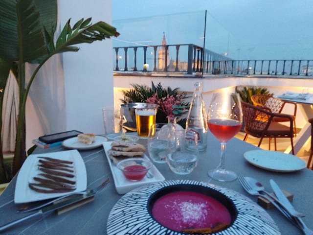 10/10Beautiful food, great service, amazing view. A wonderful evening in the Old Town watching the sun set and the moon rise over the cathedral. Thoroughly recommend.