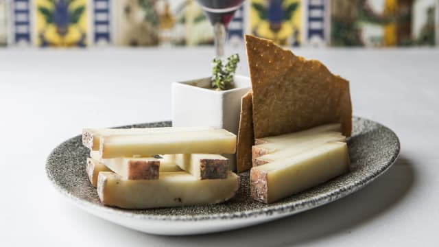Quesos (tête de moine, pastura trufa, pata mulo) con dulce de castañas y torta de cítricos