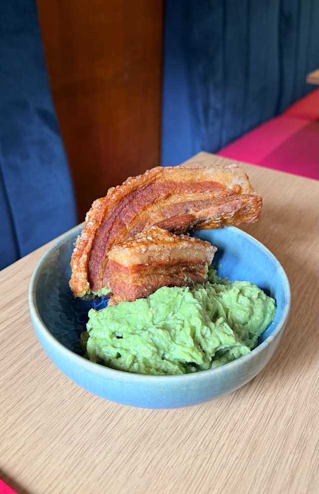 - Croustillant de poitrine de porc servi avec guacamole maison