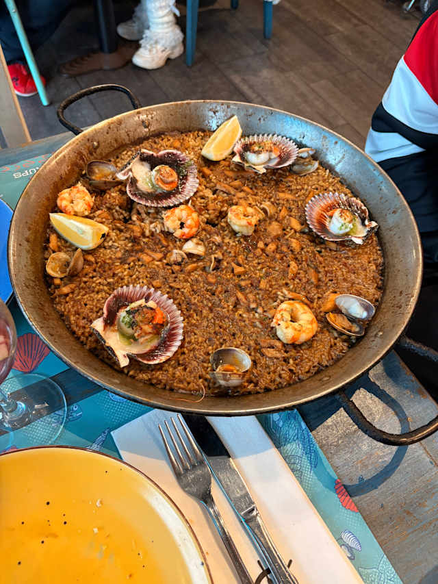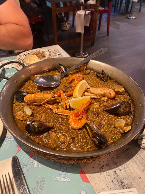 10/10Excellent Paella -shrimp perfectly cooked rather than overcooked as often the case- and excellent service, nice environment, very reasonable price. They should improve the quality of the Millegfoglie!