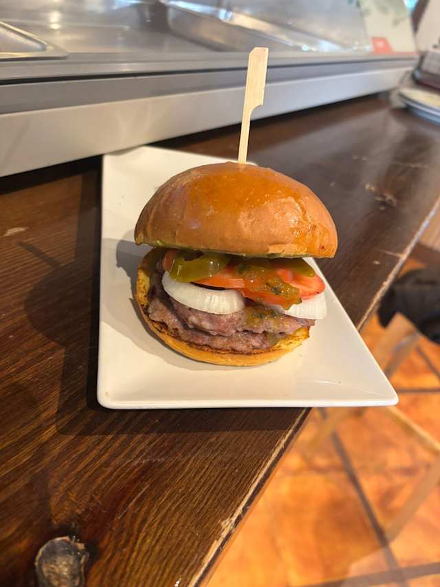- Doble carne, guacamole, relish, jalapeño, tomate, cebolla.