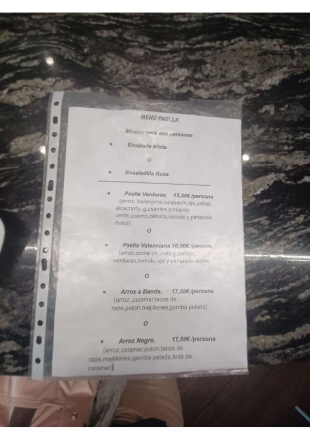 7/10Something unexpected happen with our food we order 2 types of paella for 5 people, after 35 minutos just 1 paella arrive and when we finished the waitress said that we have to wait another 30 minutes for the second paella! We lost a lot of time and when finally arrive We didn't feel like eating anymore
