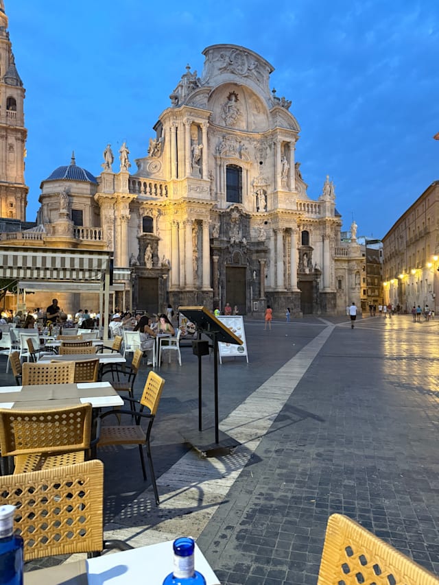 10/10Beautifully set in the sight of Murcia Cathedral, this restaurant did not fail to impress… the service was lowkey but very friendly and helpful. The Tapas was extraordinary. The flavours were outstanding . I had a beef tenderloin to act as a main . The cut was superb and cooked to perfection! It was a superb experience made better by two street musicians playing classical music that made for the perfect ambience. Totally worth the money and the time to visit!!!
