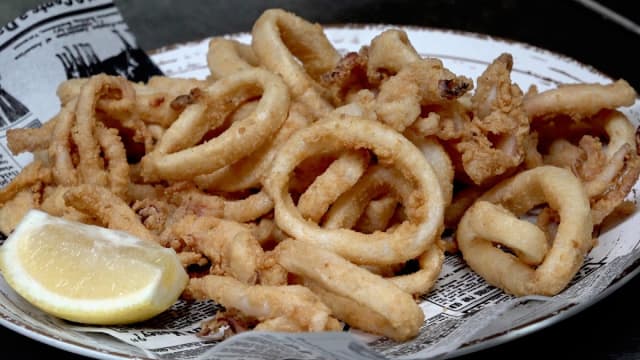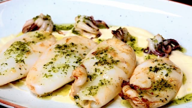 Chipirones a la Plancha con Sal Maldon de Tinta de Calamar y Alioli Fino