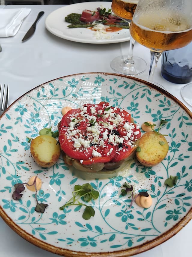 Escalivada grillée au feu de bois avec filets de sardine fumée et mayonnaise au romesco