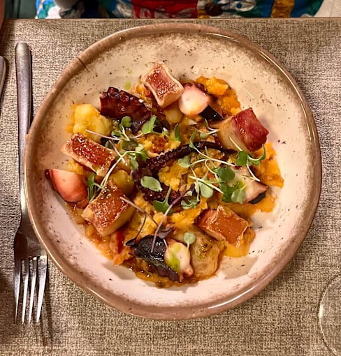 6/10We went there for dinner. Overall we found the value (quality and portions) definitely below average for the price. The tomatoes were not excellent as they should be in the carpaccio - they even had a white stripe on the edges - and very tiny bits of tuna ventresca sprinkled over instead of having some decent chunks as it usually happens with this recipe. The octopus was very heavy and greasy because of the excess of pork jowl, basically more than the octopus itself as you can see in the picture. The black cod wasn’t great too (again small portion for the price). The sauce made it heavy on the palate. The quinoa was cold, even if well seasoned. They did not have espresso decaf coffee, only the Nescafé style. The service was very slow. We suspect that the great reviews on Google and here might be due to some “commercial incentives” like free chupitos. In conclusion, the reviews do not reflect the reality and thank god for the 30% discount. It would have been a total ripoff without it.