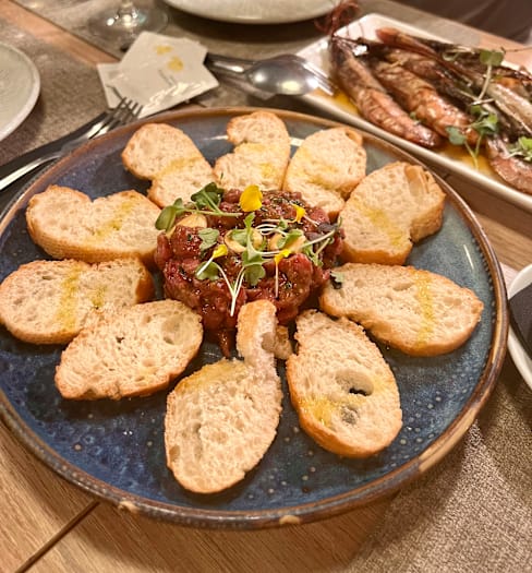 4.5/10We asked for a wine list and were told we have just one white and one red wine, no list. My tuna starter was good, my partners scallops were fresh from the freezer but just ok. Our main courses arrived before we finished our starters, rushed! We both ordered a scallop risotto. The scallops were still frozen. I asked for Parmesan cheese with my dish and they argued the grated Spanish cheese was Parmesan. The wine glass was cracked, the cutlery didn’t match. We left most of our main dish, paid and left, never to return!! Stay away!