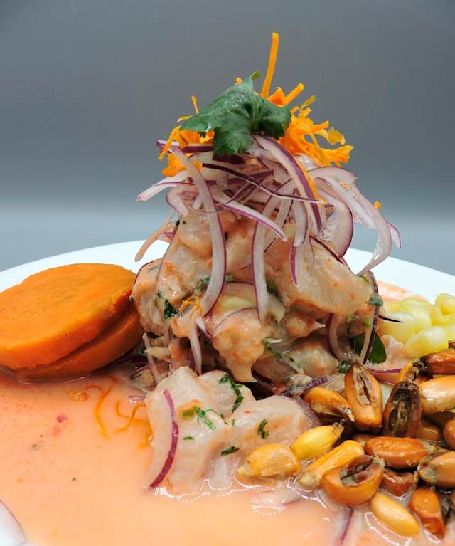 - Causa limeña, arroz con mariscos, ceviche y chicharrón de pescados