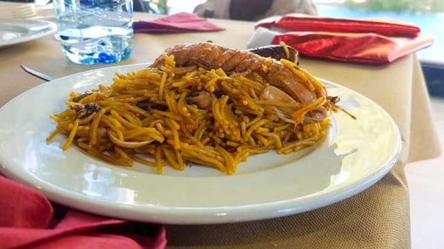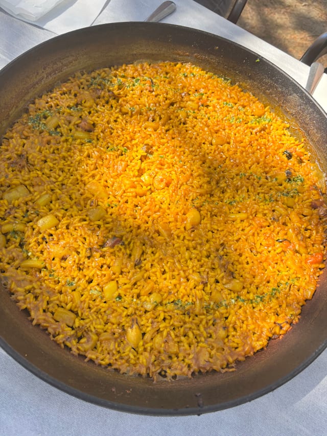 9.5/10Our second time here, even better than the first. Brilliant location in a park/pine forest: with shade, a cool place to relax on a hot day. As this visit was on a Sunday, the "carta" was in fact a choice between about six primeros and six secundos (although these were all rice/fideua dishes). All very good indeed. Service friendly, helpful and efficient. With The Fork discount, the final bill was amazingly cheap, but the full price would be acceptable. Only negative point is that the management do not make the most of the fantastic location (e.g. "pools" only half full, pine needles and cigarette ends swept into piles but not binned, random piles of unused chairs): not a big deal but the place does not look its best.