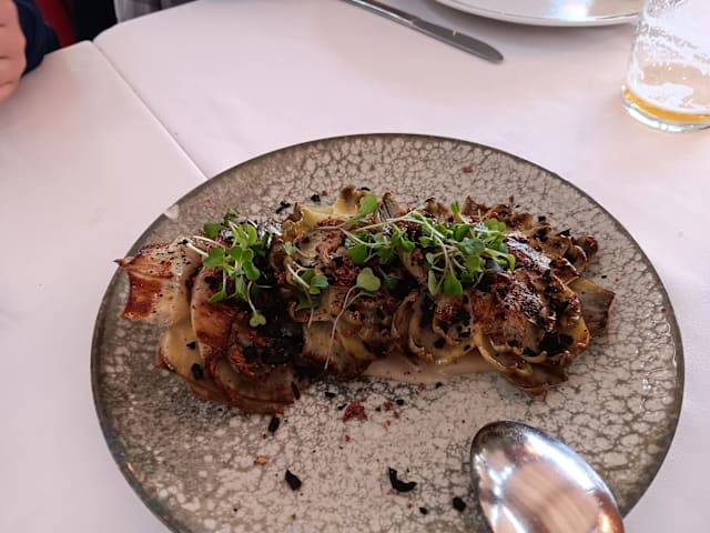8.5/10Nice terrace , attentive service , good quality food. The steak and fish main courses stood out. One of the mushroom starters was not really to our taste . Reasonably priced. Would recommend.