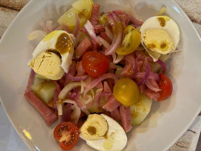 - 1 Chuleta de cerdo, 3 alitas, huevos, patatas