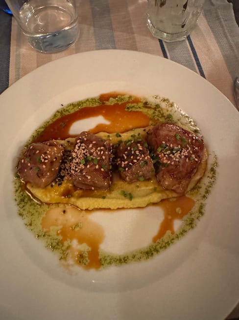 10/10What an amazing restaurant, gorgeous food, attentive waiters, fine wines. Outside looks plain but the inside is very different, with a mix of jazz music, fine food and drink, served by excellent waiters, the food is to die for we both had avocado and anchovies which was delicious, then my wife had the sea bass and I had the squid with black rice both of which were excellent, for desserts we both had the cheesecake. We have eaten all over the world, and I cannot say that I have eaten better food anywhere, even in 5*+ hotels. Go there, eat there,Enjoy good food ..