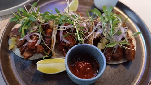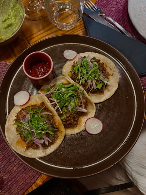 10/10The food here is seriously good—high quality and packed with flavor. The portions are definitely on the smaller side, so just keep that in mind, but it was totally worth it. I had the birria tacos and they were a hit with everyone at the table. The fish tacos were great too. You can tell a lot of care goes into everything, including the drinks—they were well-made and really tasty.