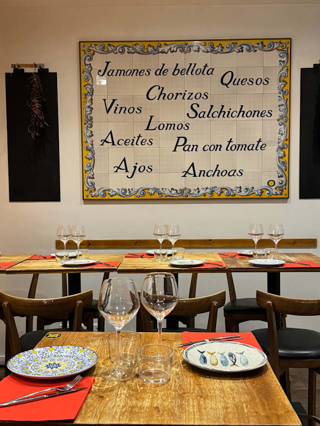8.5/10Small restaurant on a side street off the Champs Elysées. Lovely aroma of jamón welcomes you when you walk through the door. We tried a selection of tapas dishes and enjoyed the variety of flavours. Pigs cheeks and mashed potato/chorizo dishes were delicious! Chocolate mousse and turrón desserts finished the meal off nicely. Attentive, friendly service.