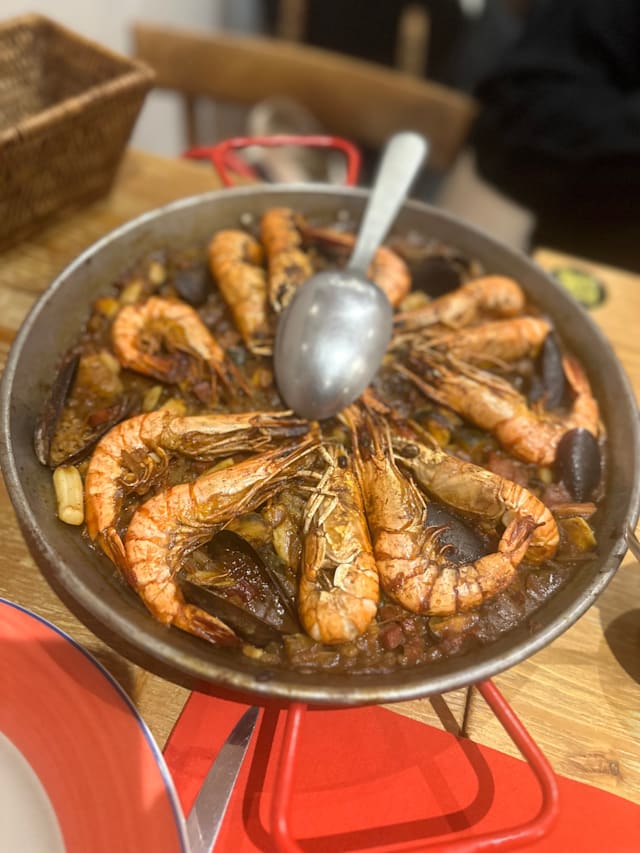 9.5/10We asked for one paella for 2 and got 2 paelllas instead !… other wise the wine, ham and paella were great