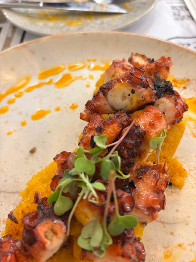 7.5/10Given the reviews we expected something special. It was nice but not exceptional. We were taken to our table and told that the menu was accessed via a QR code and that the menu was in Spanish. No offer to help with it if we needed it. Thankfully my phone translated it. Our food was good without being spectacular.