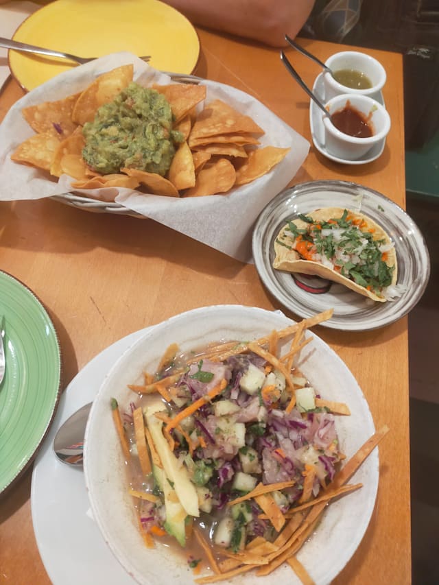 9.5/10I have to be honest my first impression was not great. The seats are not very comfortable and they use plastic plates for the appetiser. But the ambiance is maybe trying to reflect a diner in Mexico. The food was delicious. The fish tacos were really good. The guacamole was fresh and very tasty. The tamales were outstanding. If you like spicy ask for their green spicy salsa it’s very nice. We also enjoyed the chipotle salsa, it has a nice smokey flavour without too much heat. It’s going on our regular rotation list for sure.