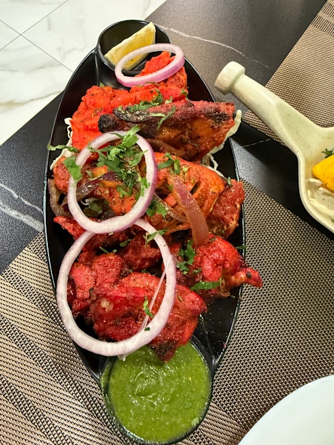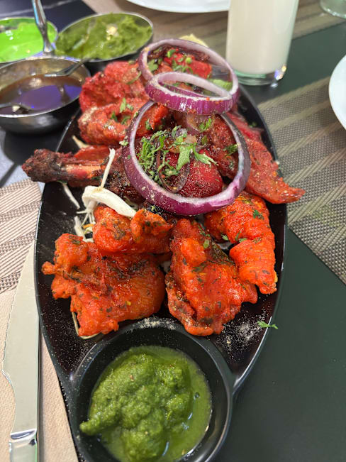 3/10We came here expecting a decent Indian meal in Barcelona, but the food was well below average. The tandoori platter was a mess—while the fish was passable, the chicken was dry to the point of being inedible. No flavor, no moisture, just disappointing. The biryani was a disaster. Bland, poorly cooked, and completely lacking the depth of flavor you’d expect from even a mediocre biryani. Same with their chicken curry. But the real kicker? They had the audacity to charge us €4 for a side of onions. Onions. Something that comes complimentary at the every respectable Indian restaurant. There are too many good restaurants in Barcelona to waste time and money here. Skip this place—you’ll thank yourself later.